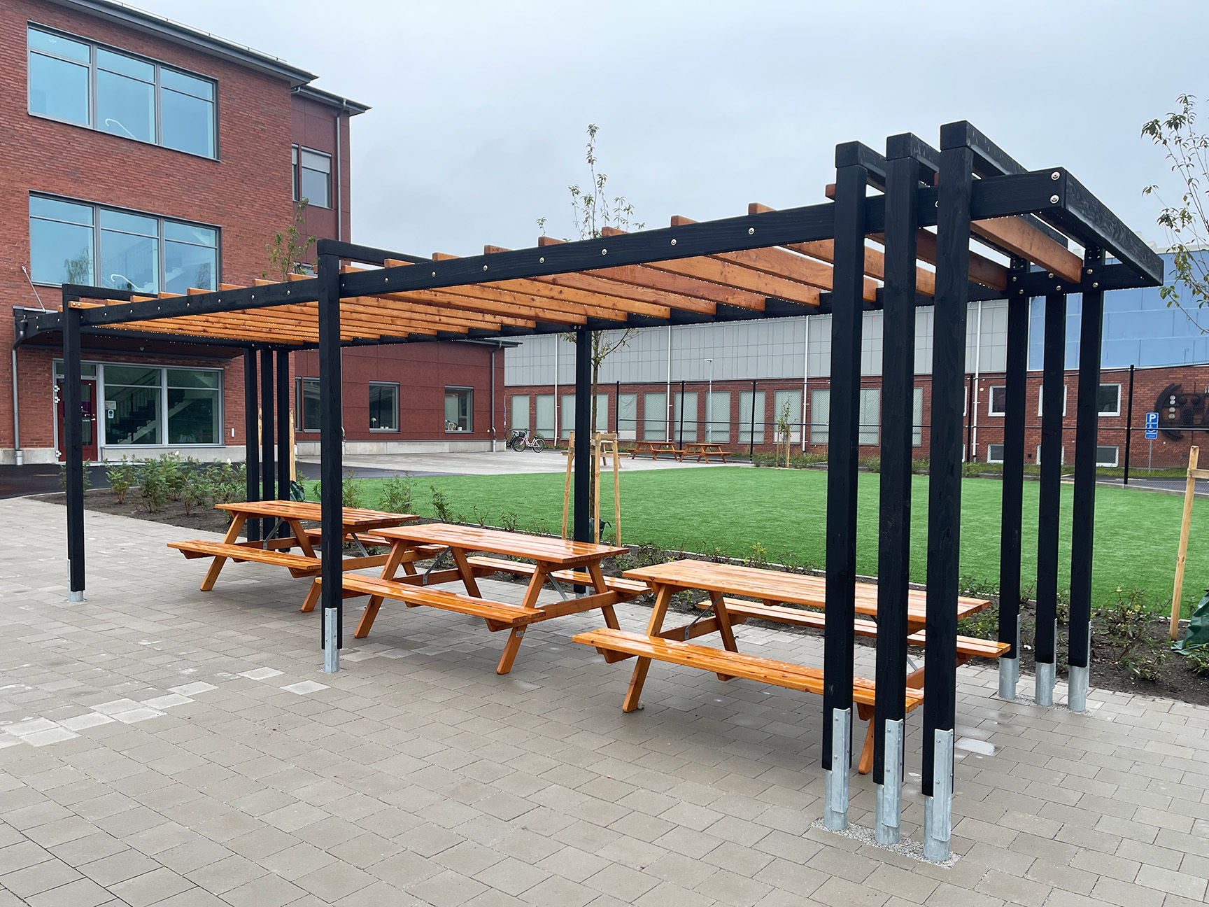Christinaskolan i Piteå har cirka 350 högstadieelever. I nära anslutning till skolan finns sporthall, ishall, fotbollsplan och populära Norrstrandsbadet. Nu har skolgården fått ett rejält lyft med klätterställning, gungor, bollvägg med basketkorg och hinderbana. Dessutom finns det nya parksoffor, sittstockar och bänkbord utplacerade, både under pergolan och till klassundervisning under utfällbart tak.