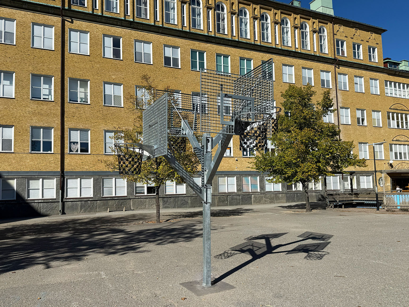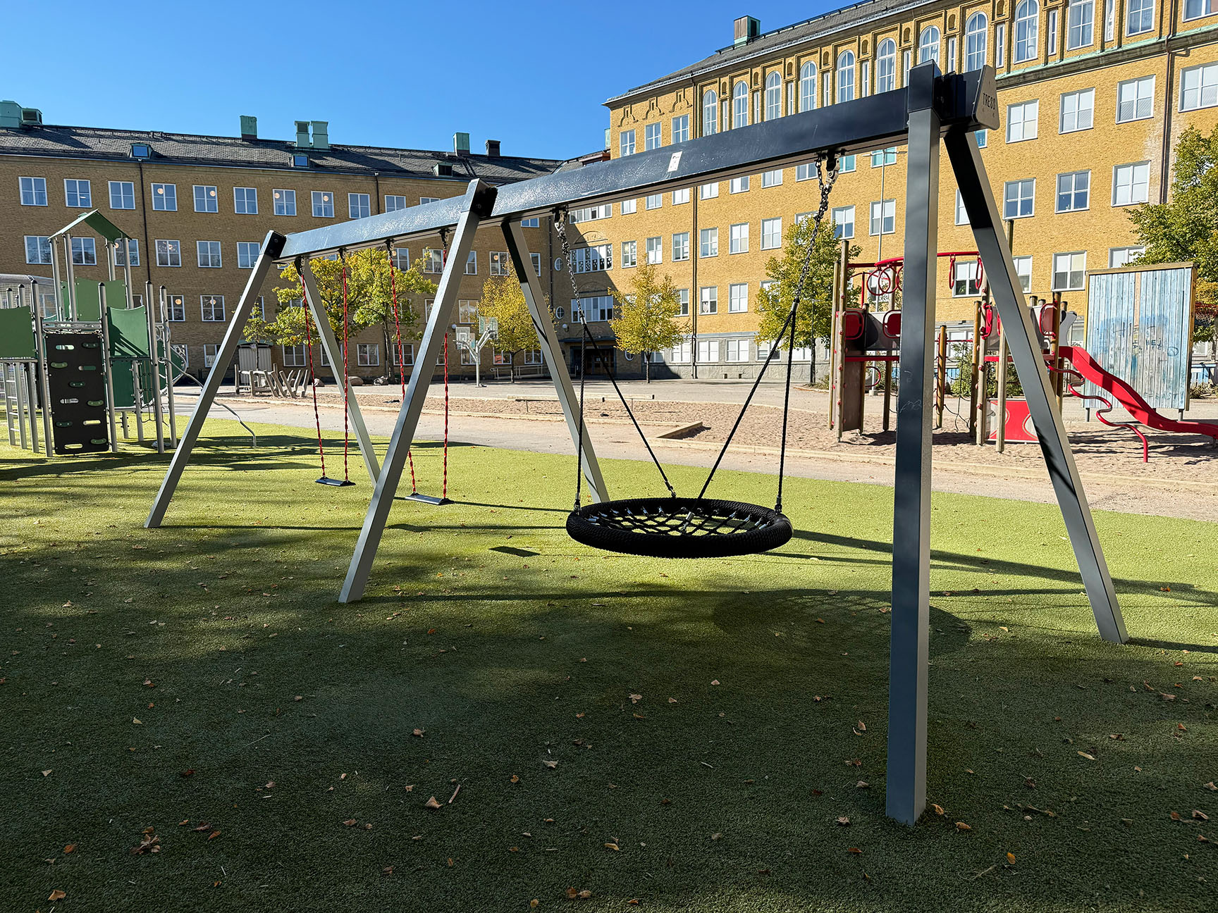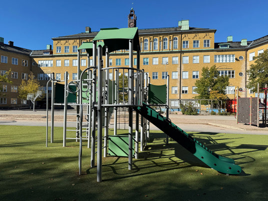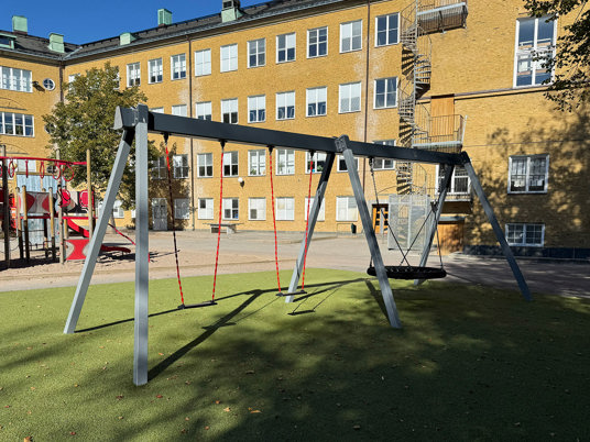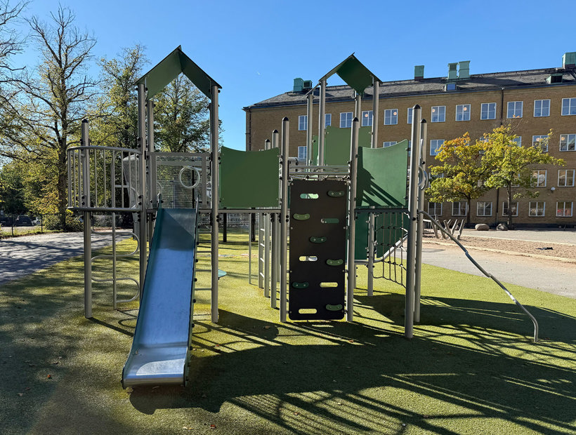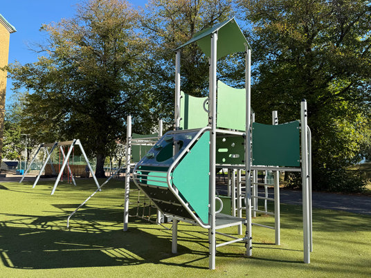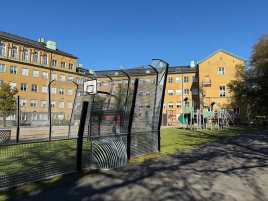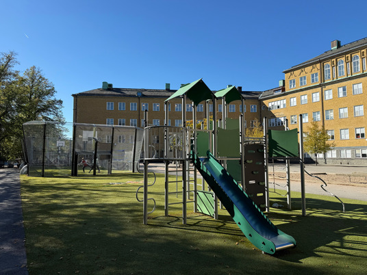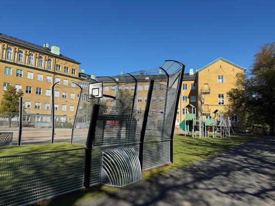 Den uppdaterade skolgården har blivit en naturlig samlingsplats för alla elever. Förutom lekplatsen med klätterställning och gungor finns en stor multiarena som erbjuder plats för många olika bollspel. Arenan omges av konstgräs, vilket gör ytan lika lämpad för lek och rörelse som för vila och umgänge.