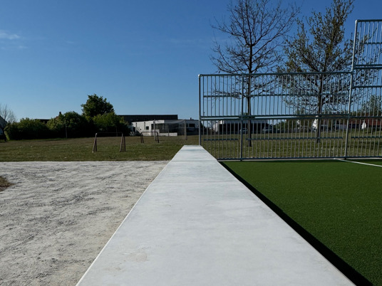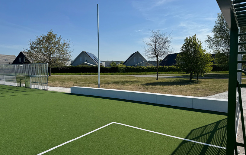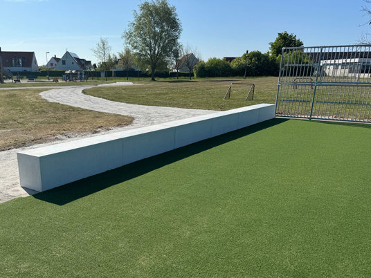 Den öppna långsidan gör att spontanidrottsplatsen känns som en del av parken snarare än en avgränsad plan. Betongmodulerna fungerar utmärkt som sittplatser och avbytarbänkar. Lösningen skapar god överblick och trygghet, samtidigt som den uppmuntrar till att fler vågar delta – oavsett ålder och nivå.