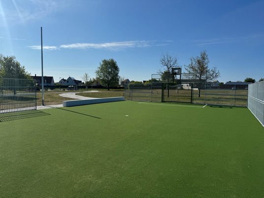 För att möta kommunens krav på slitstyrka och låg underhållsnivå valdes varmförzinkade stålkonstruktioner i kombination med slitstarkt konstgräsunderlag och betongmoduler. Resultatet är en anläggning som tål både flitig användning och väderpåverkan – och som samtidigt smälter in naturligt i parkens grönska.