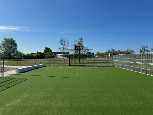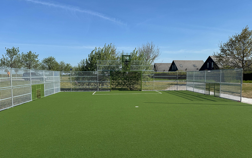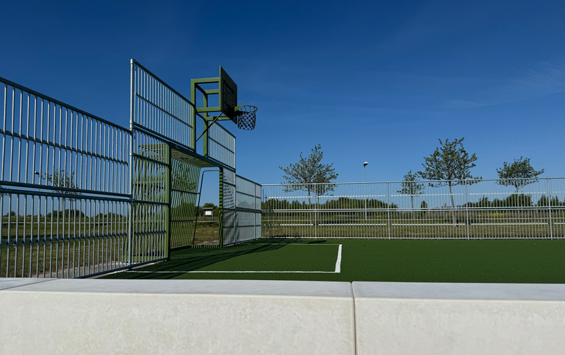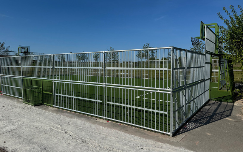 Arenan är utformad för att rymma flera olika aktiviteter och idrotter. På kortsidorna finns kombinerade arenamål med integrerade basketkorgar, vilket gör ytan användbar både för fotboll, basket och andra bollspel. Längs den öppna långsidan finns dessutom minimål för landhockey och innebandy, vilket skapar extra variation och spontana spelmöjligheter.