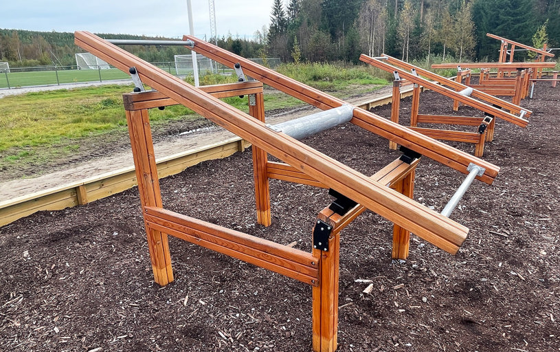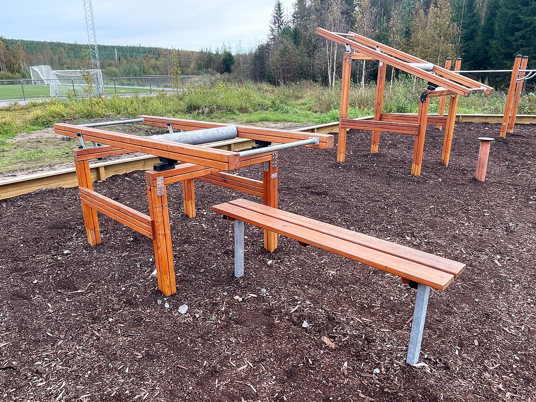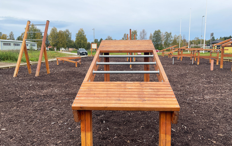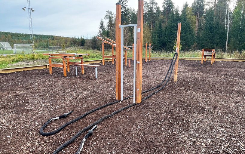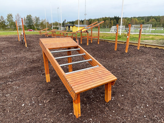 Utegymmet är ett fint komplement till idrottsplatsen och gör det enkelt att kombinera löpning, bollspel eller promenader med styrka och funktionell träning.
