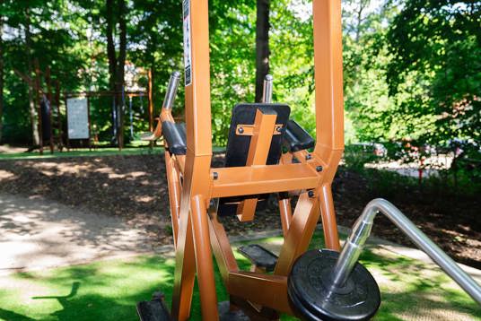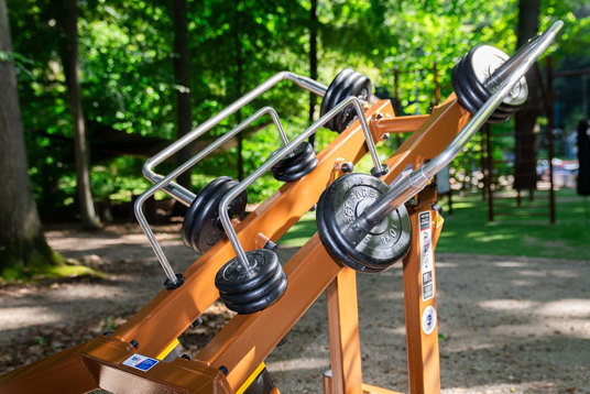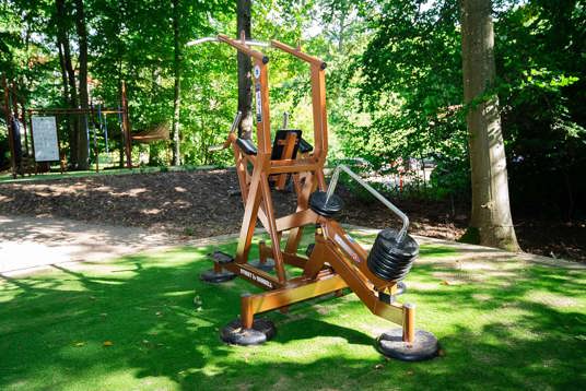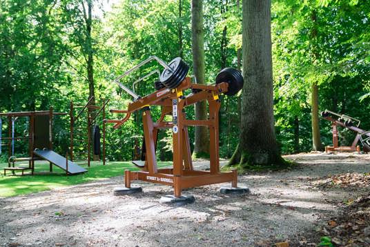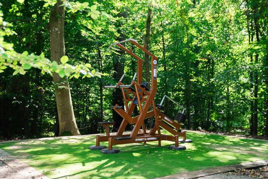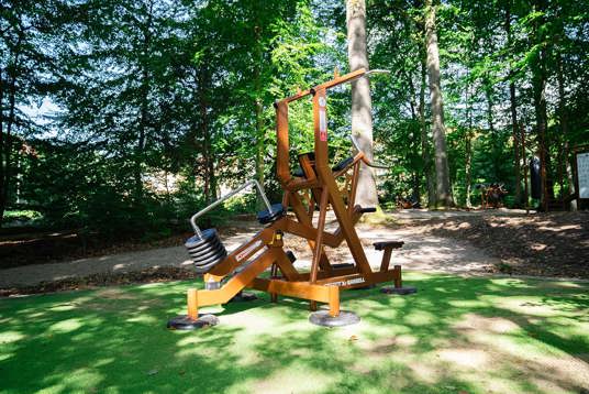 Skogen runt Vejlefjord är en del av platsens identitet – och därför var det avgörande att utrustningen inte bara smälte in i naturen, utan också stödde den naturbaserade rehabilitering som Vejlefjord är känt för. Omgivningarna bidrar till att tillföra livskvalitet i träningen och har stor betydelse för varje enskilt rehabiliteringsförlopp.