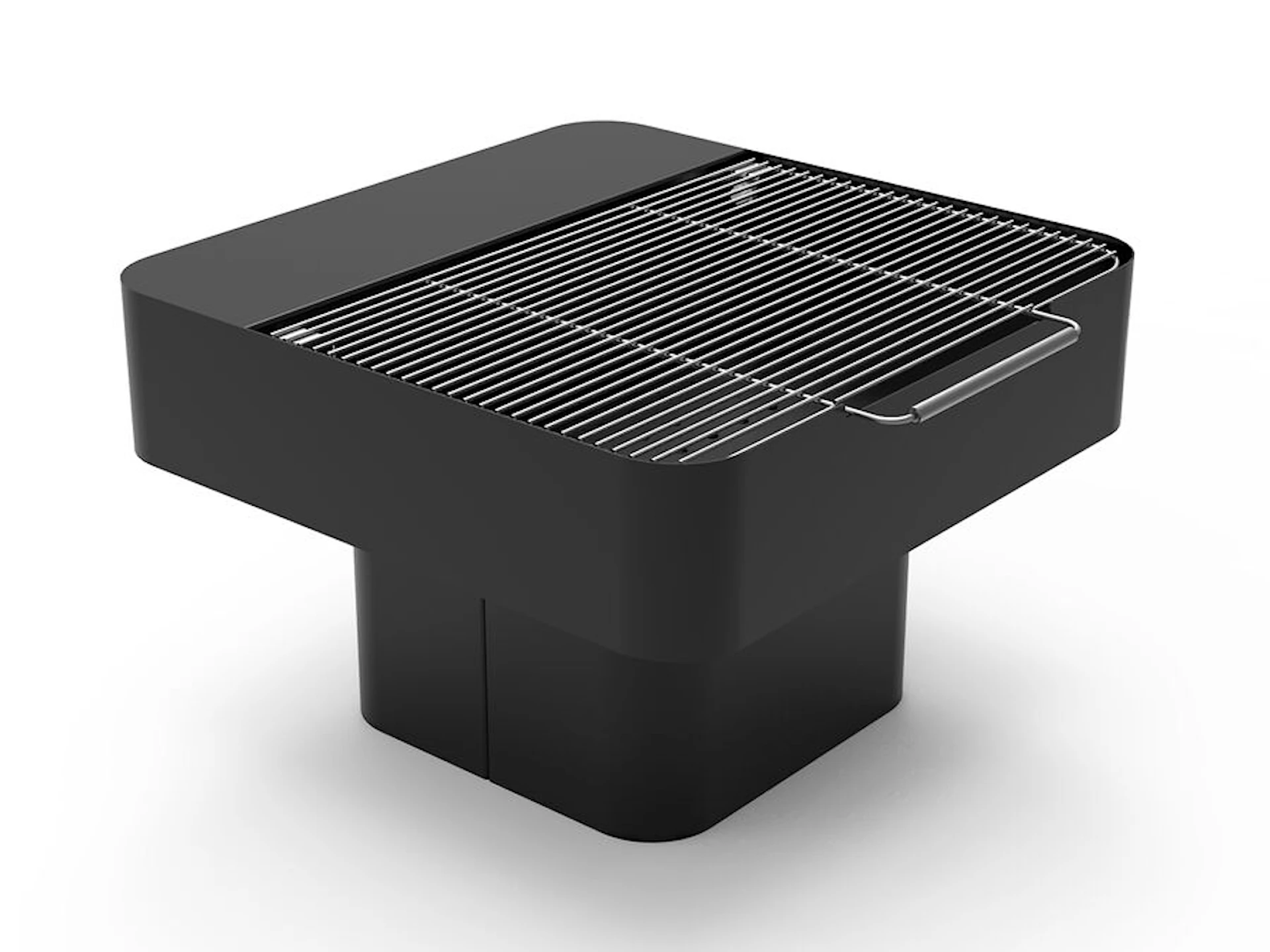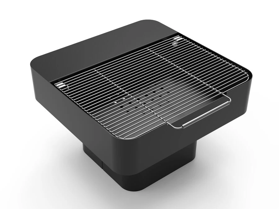 Basplattan är tillverkad i 5 mm stål och övriga delar i 3 mm stål. Grillen är pulverlackerad med värmebeständig färg i svart RAL 9005 som standard, vilket ger en UV-tålig och slitstark yta med minimalt underhållsbehov.