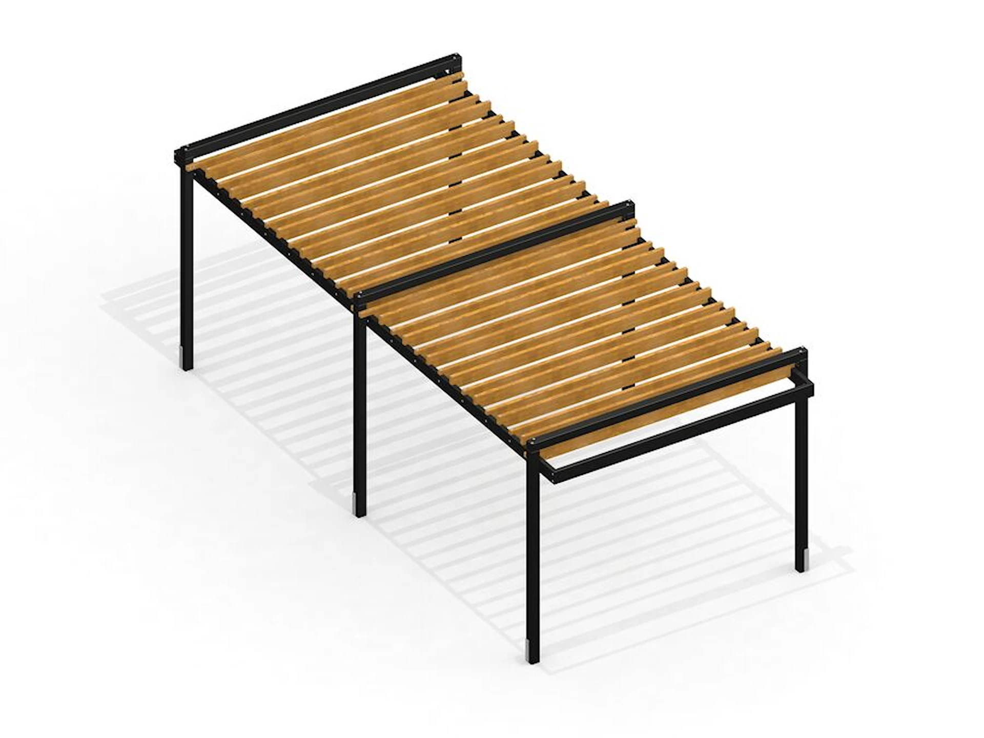 Pergolan fungerar lika bra som solskydd över sittplatser som en tydlig rumsbildare i parker, på torg eller i bostadsmiljöer. Den öppna utformningen ger en luftig känsla samtidigt som ljuset silas mjukt ner.