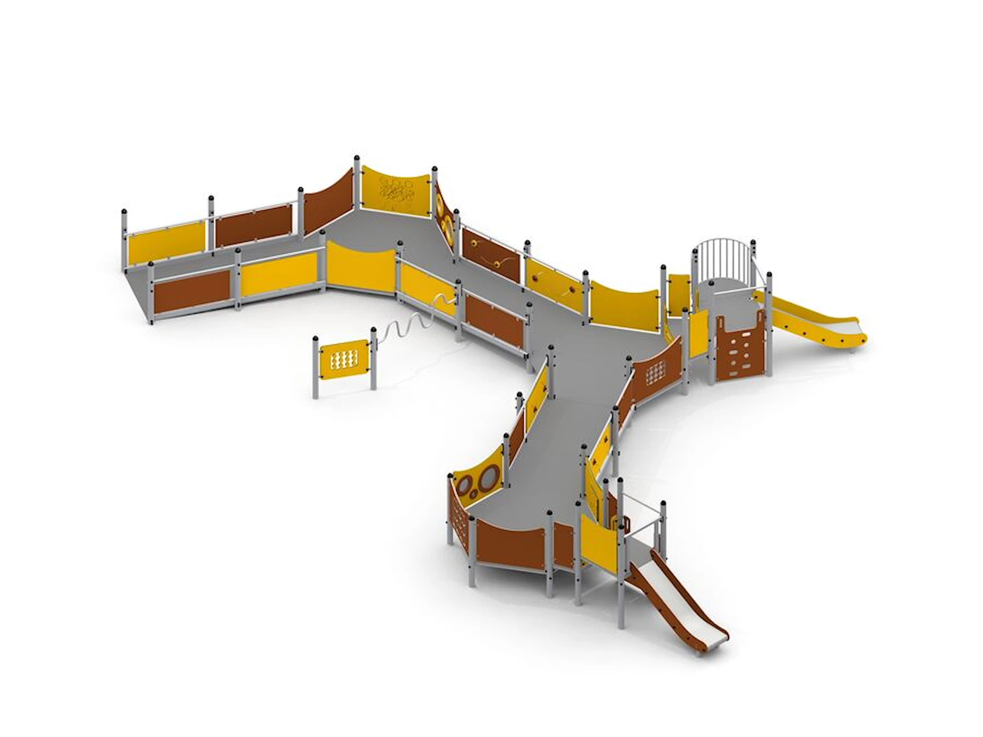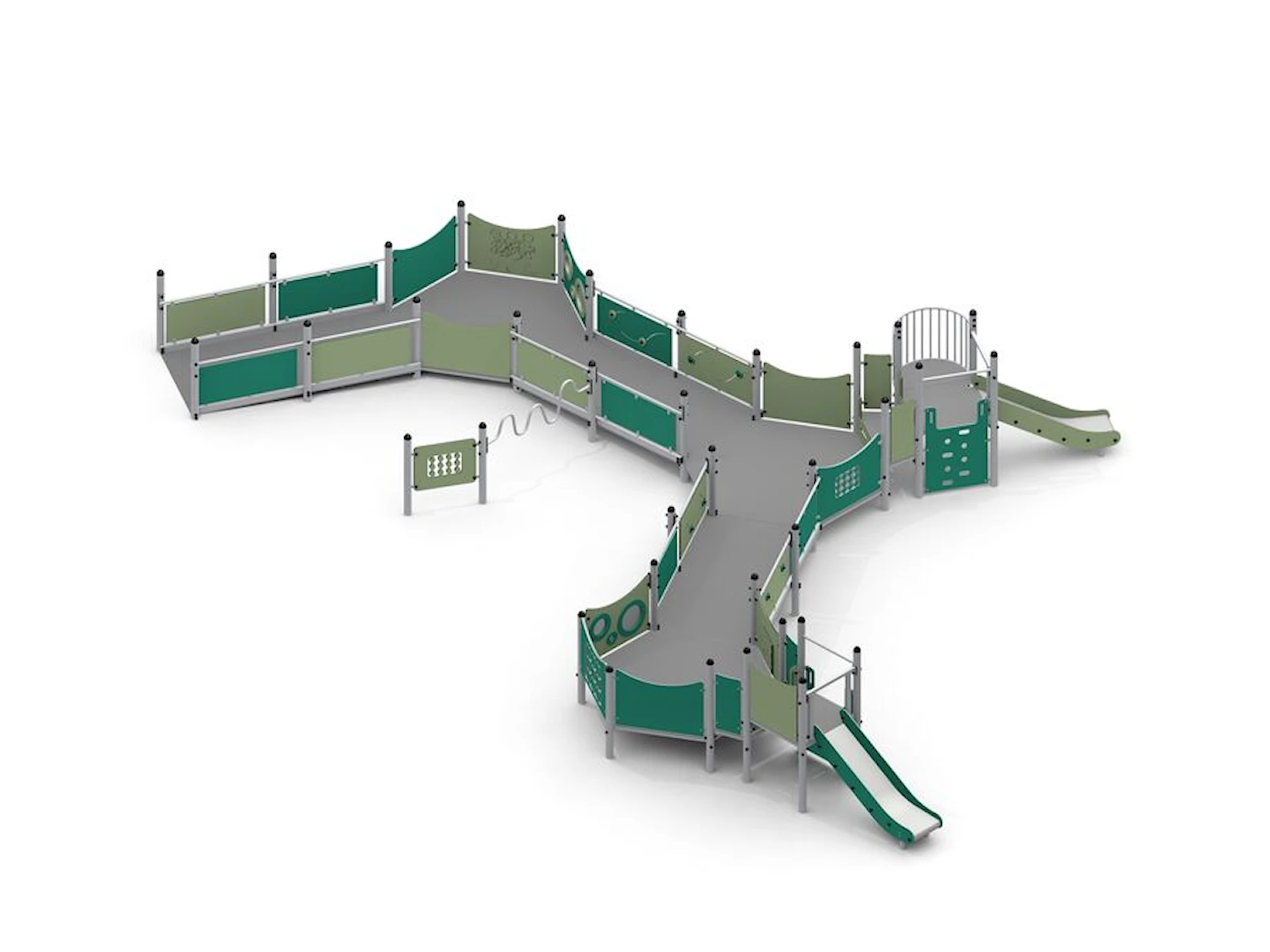 Med sina breda ramper och strategiskt placerade plattformar skapas god tillgänglighet och tydliga rörelseflöden. Här kan barnen ta sig fram i sin egen takt, stanna upp, mötas och delta i olika typer av lek. Zodiak bjuder in till rollekar, socialt samspel och gemensamma aktiviteter, samtidigt som den innehåller två rutschkanor som ger variation och rörelseglädje.