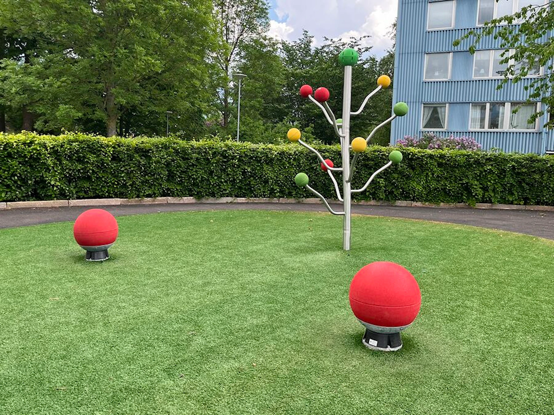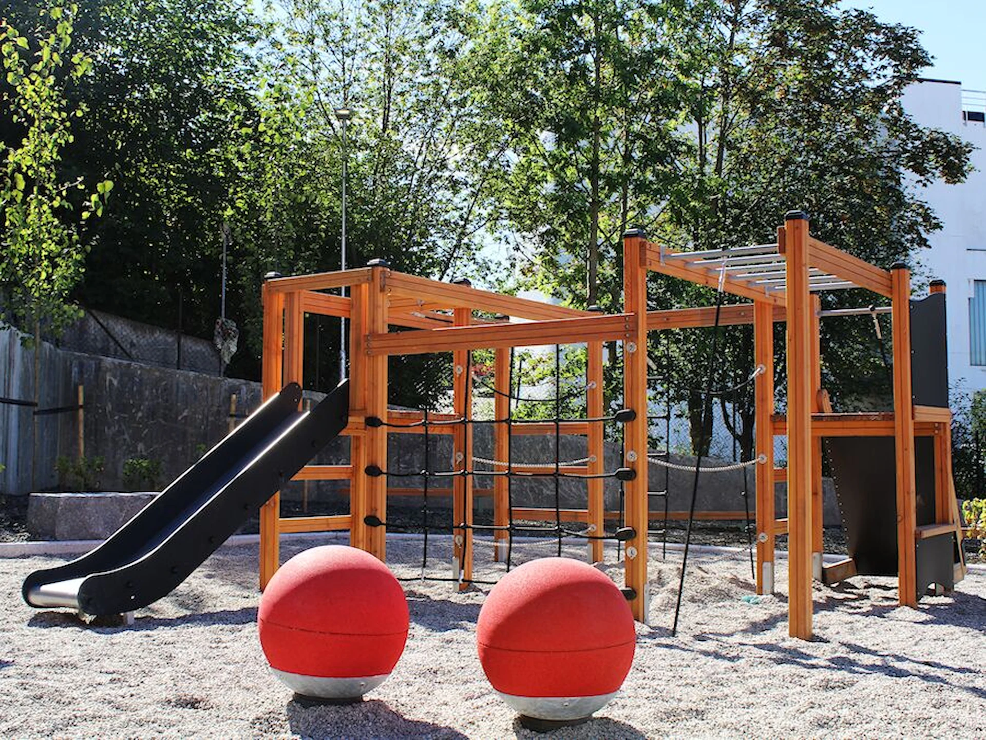 Däremot har vi många produkter utan trä som kan levereras i stort sett omgående, exempelvis Boulder Rocks, gungor, mål, basket, bordtennis, fristående rutschar, klätternät, studsmattor, bänkbord med mera.