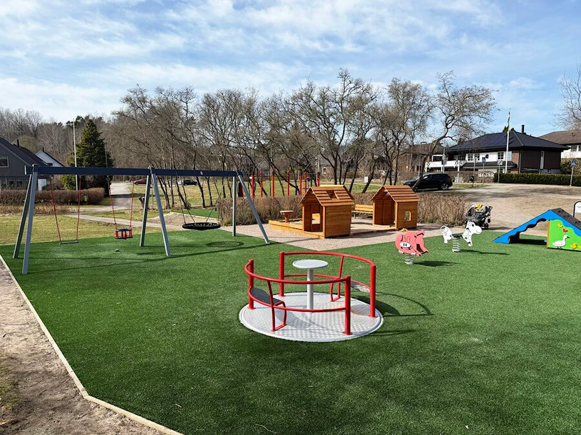 Däremot har vi många produkter utan trä som kan levereras i stort sett omgående, exempelvis Boulder Rocks, gungor, mål, basket, bordtennis, fristående rutschar, klätternät, studsmattor, bänkbord med mera.