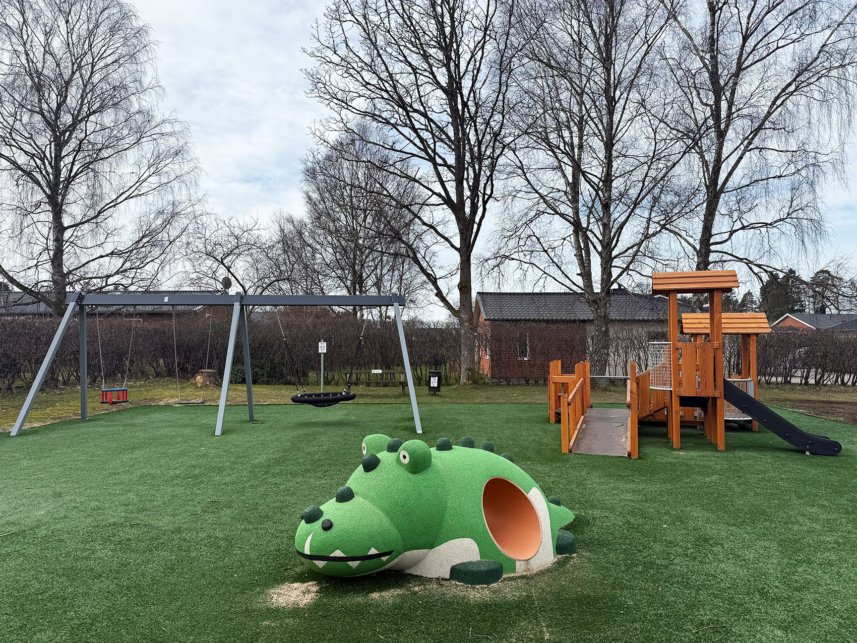 Däremot har vi många produkter utan trä som kan levereras i stort sett omgående, exempelvis Boulder Rocks, gungor, mål, basket, bordtennis, fristående rutschar, klätternät, studsmattor, bänkbord med mera.