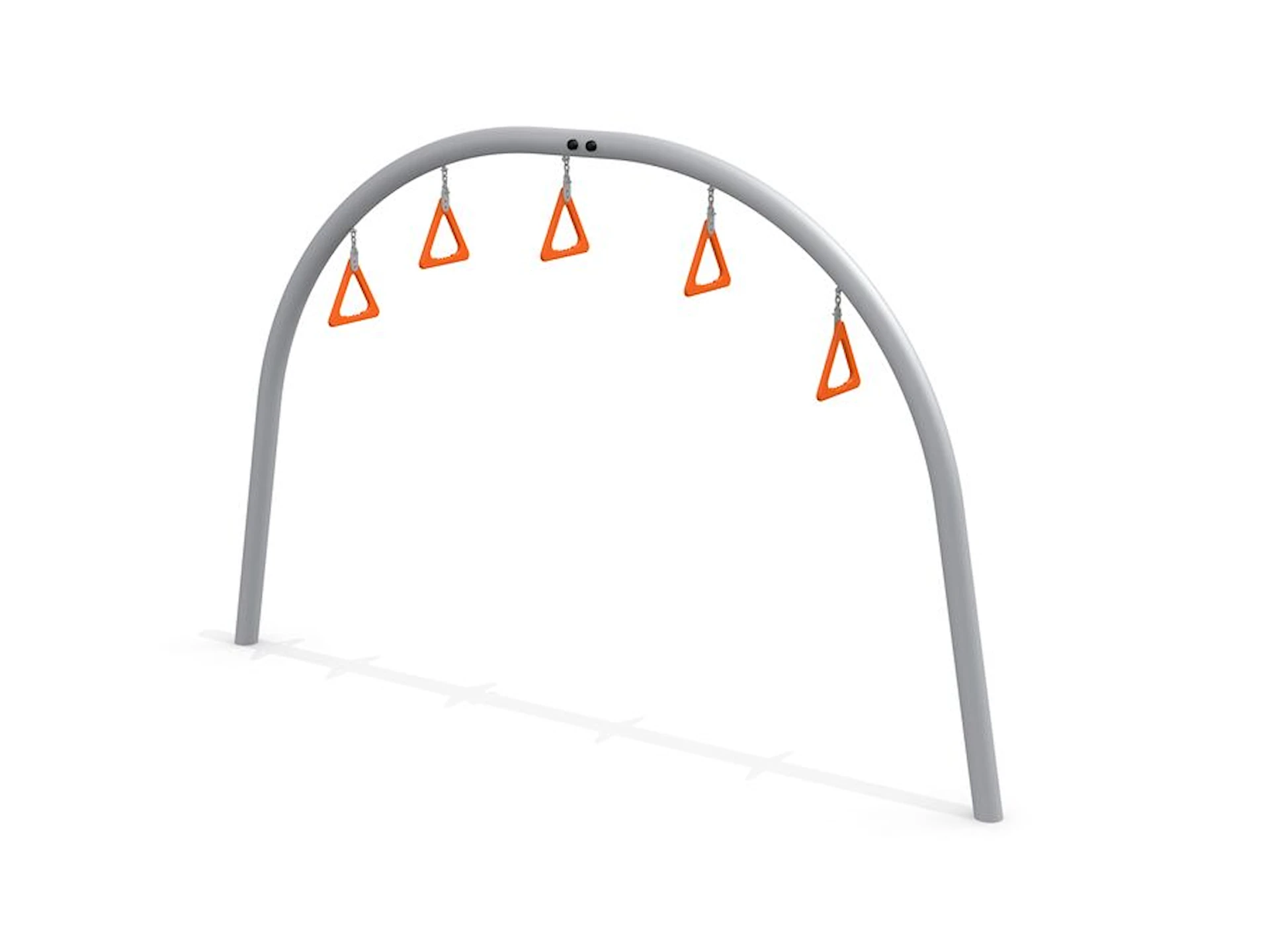 Ringarna tränar styrka, koordination och greppförmåga samtidigt som de uppmuntrar till lekfulla rörelsemönster. Konstruktionen är stabil och robust, anpassad för frekvent användning i offentliga utemiljöer som skolor och lekparker.