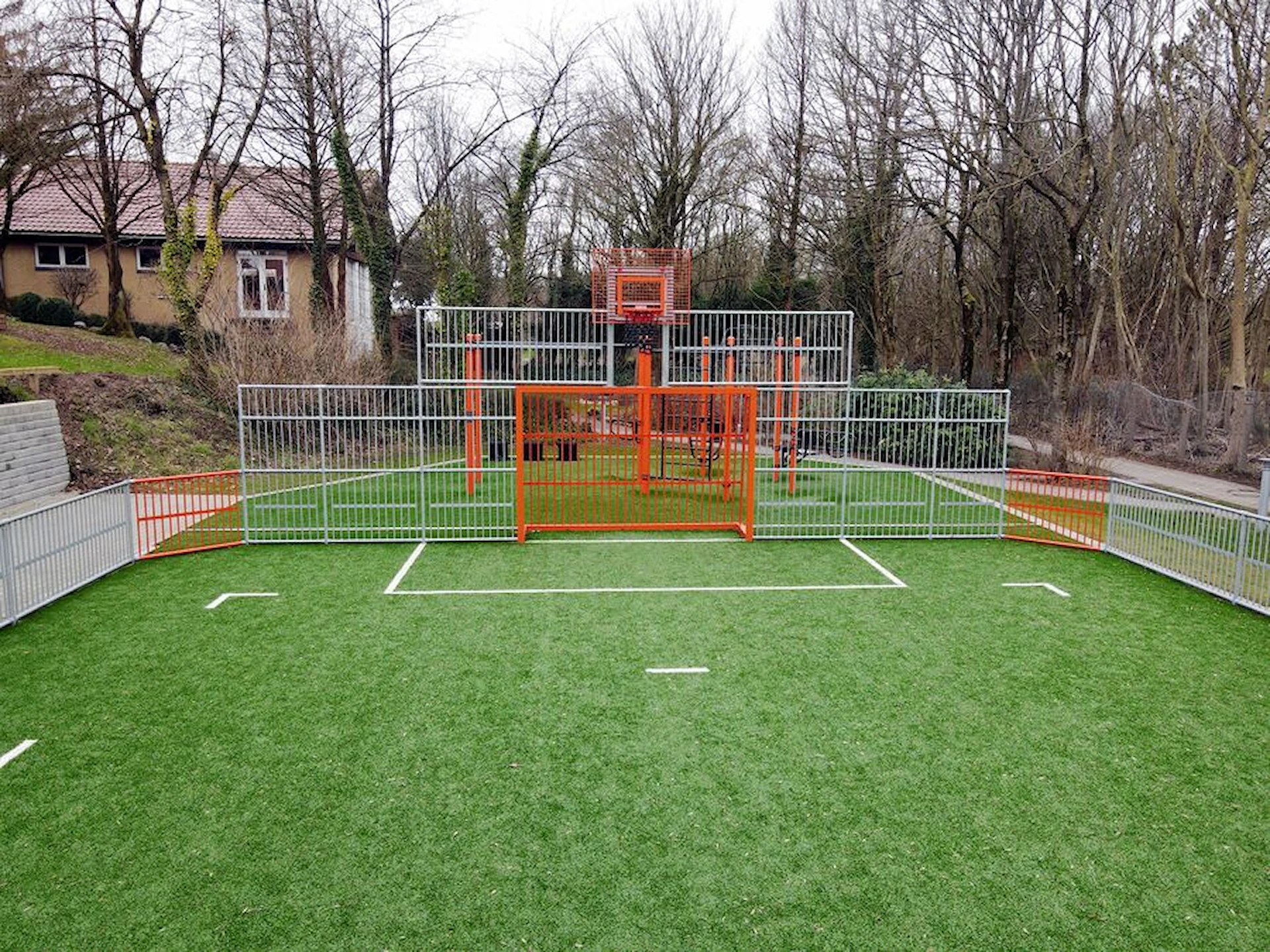 Jag vill ha ett pris på STEEL Sarg med Basket över Arenamål 300 x 200 cm