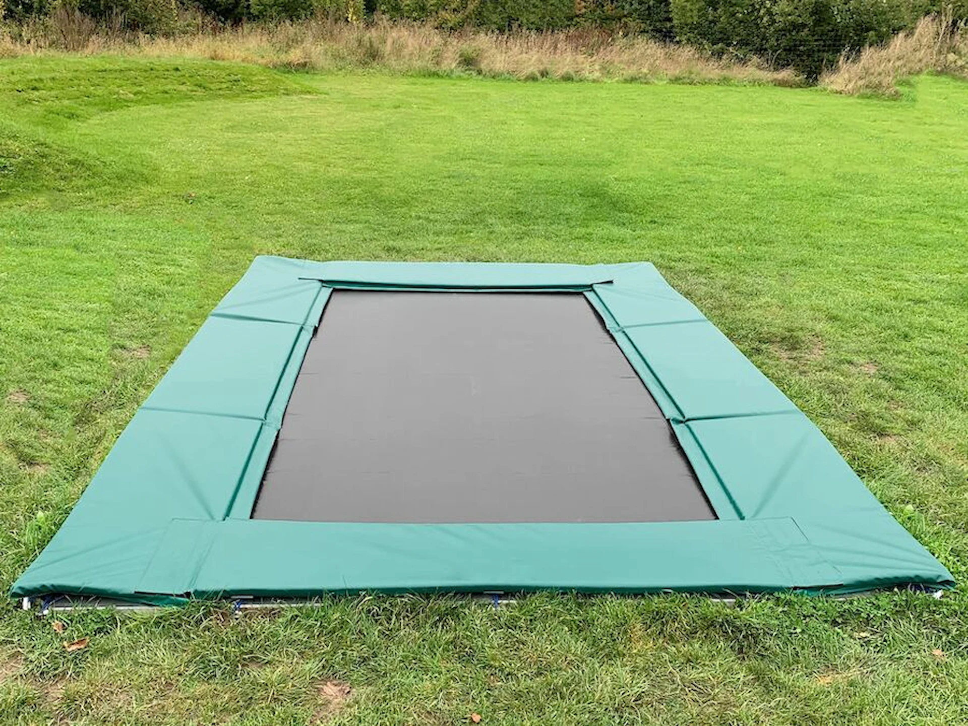 Trampolinen är certifierad enligt EN 1176 avseende säkerhetskrav för fasta lekredskap på offentliga lekplatser. En stor rektangulär studsmatta för nedgrävning, i absolut toppklass, som håller i många år.