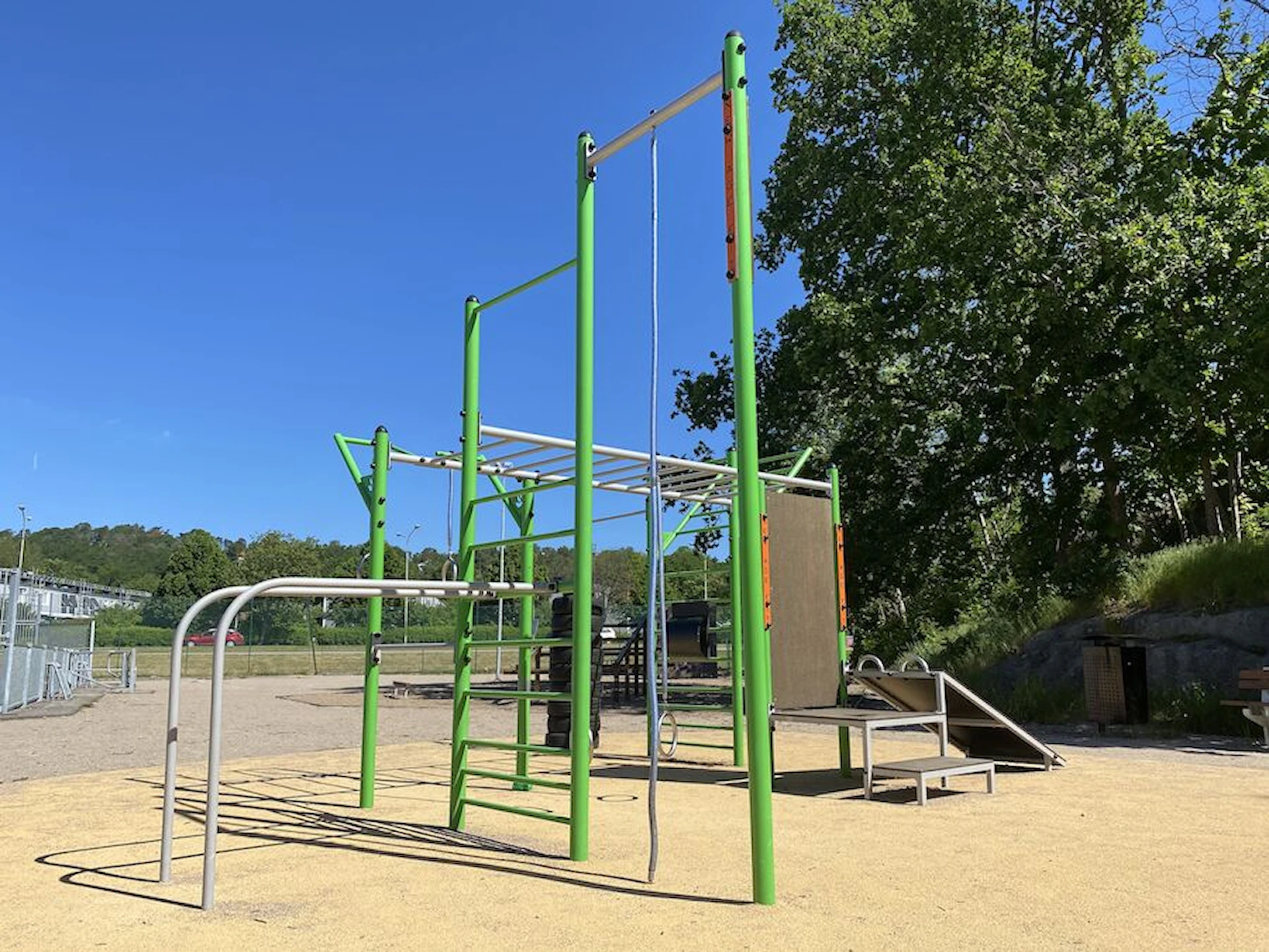 Däremot har vi många produkter utan trä som kan levereras i stort sett omgående, exempelvis Boulder Rocks, gungor, mål, basket, bordtennis, fristående rutschar, klätternät, studsmattor, bänkbord med mera.