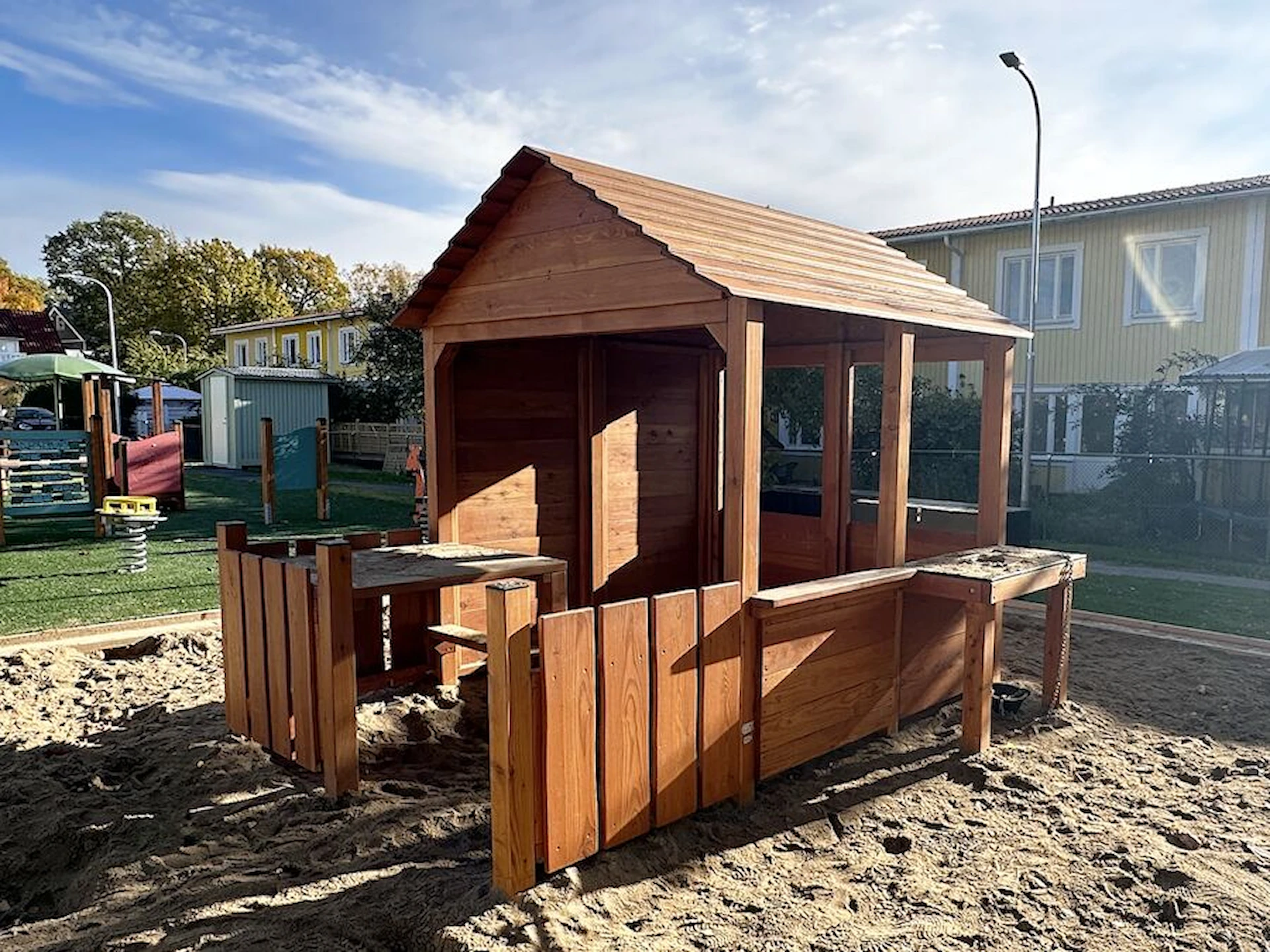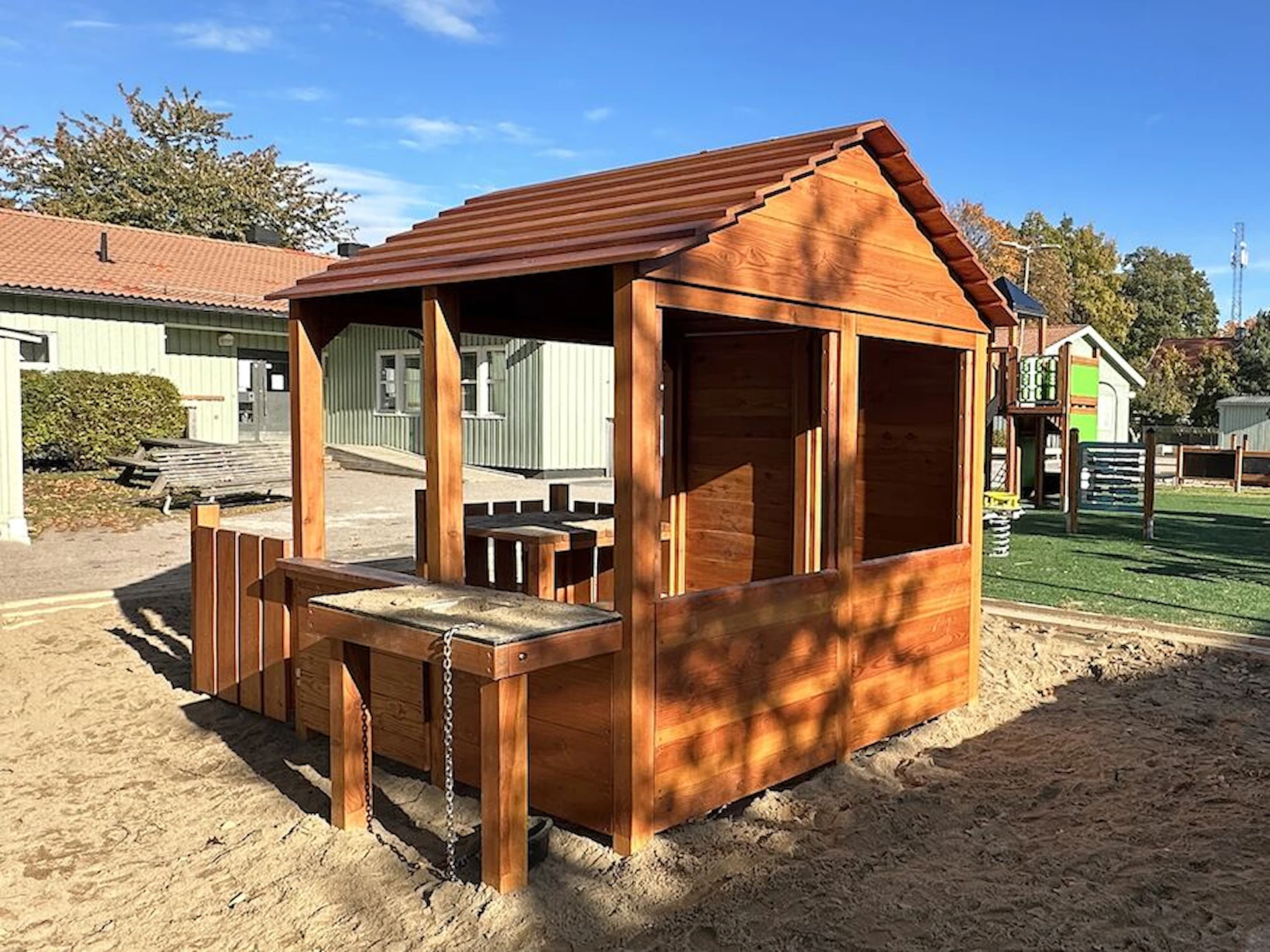 Däremot har vi många produkter utan trä som kan levereras i stort sett omgående, exempelvis Boulder Rocks, gungor, mål, basket, bordtennis, fristående rutschar, klätternät, studsmattor, bänkbord med mera.
