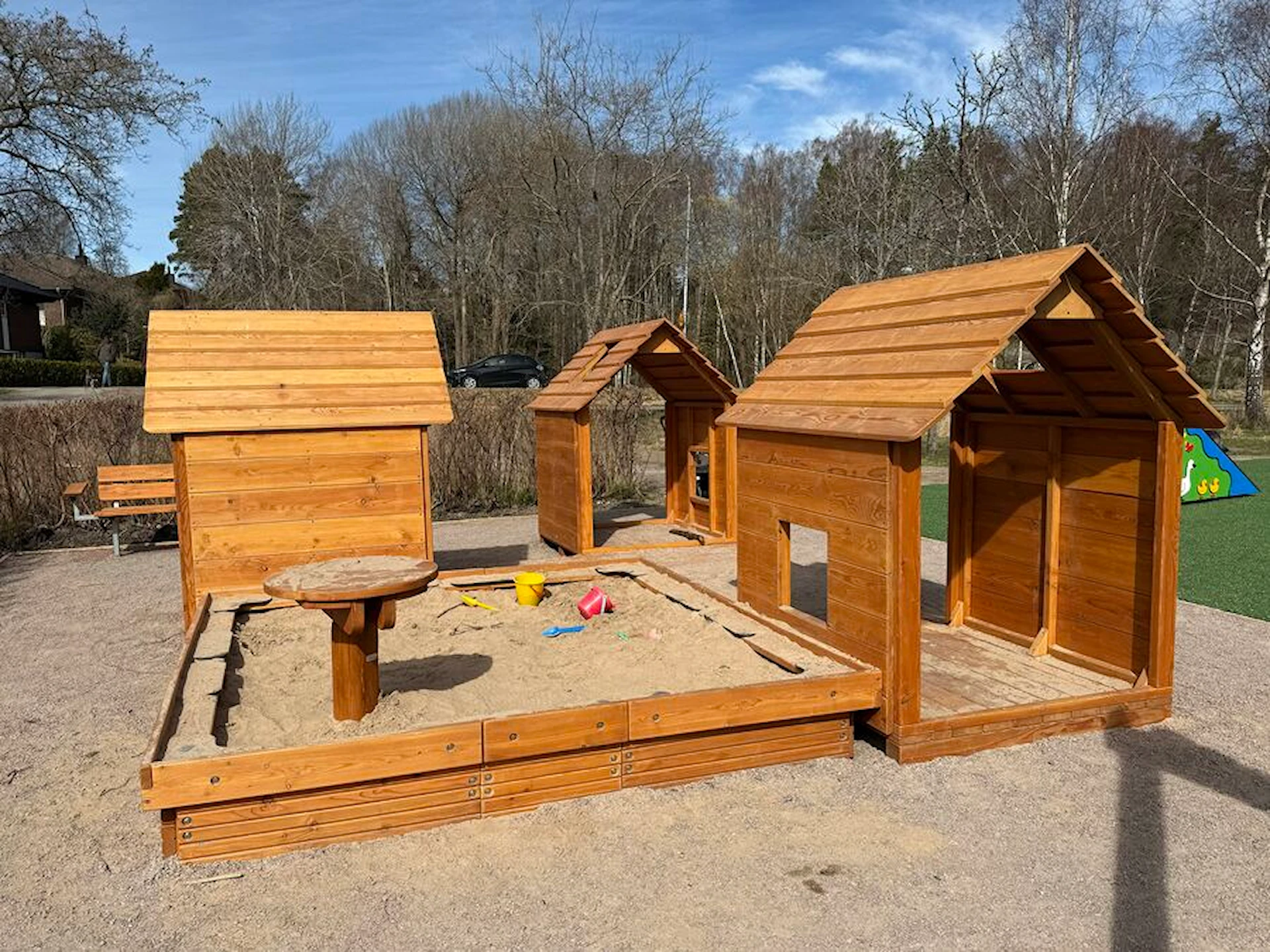 Däremot har vi många produkter utan trä som kan levereras i stort sett omgående, exempelvis Boulder Rocks, gungor, mål, basket, bordtennis, fristående rutschar, klätternät, studsmattor, bänkbord med mera.