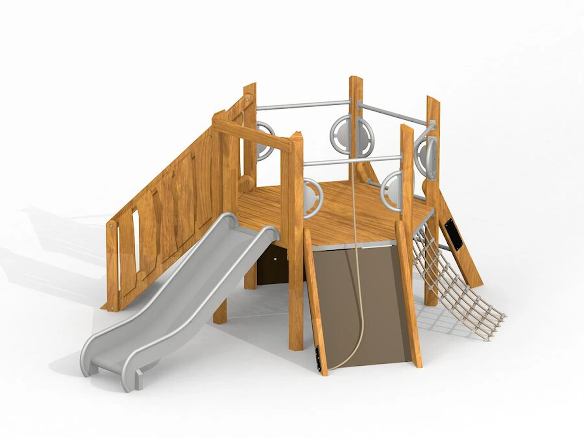 Däremot har vi många produkter utan trä som kan levereras i stort sett omgående, exempelvis Boulder Rocks, gungor, mål, basket, bordtennis, fristående rutschar, klätternät, studsmattor, bänkbord med mera.