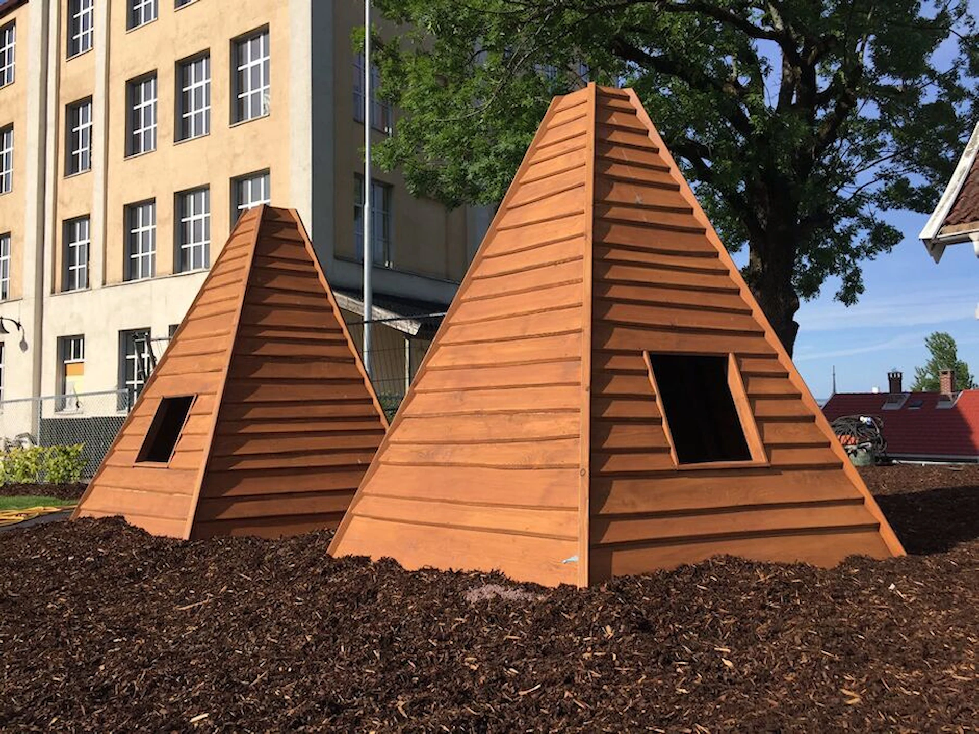 Däremot har vi många produkter utan trä som kan levereras i stort sett omgående, exempelvis Boulder Rocks, gungor, mål, basket, bordtennis, fristående rutschar, klätternät, studsmattor, bänkbord med mera.