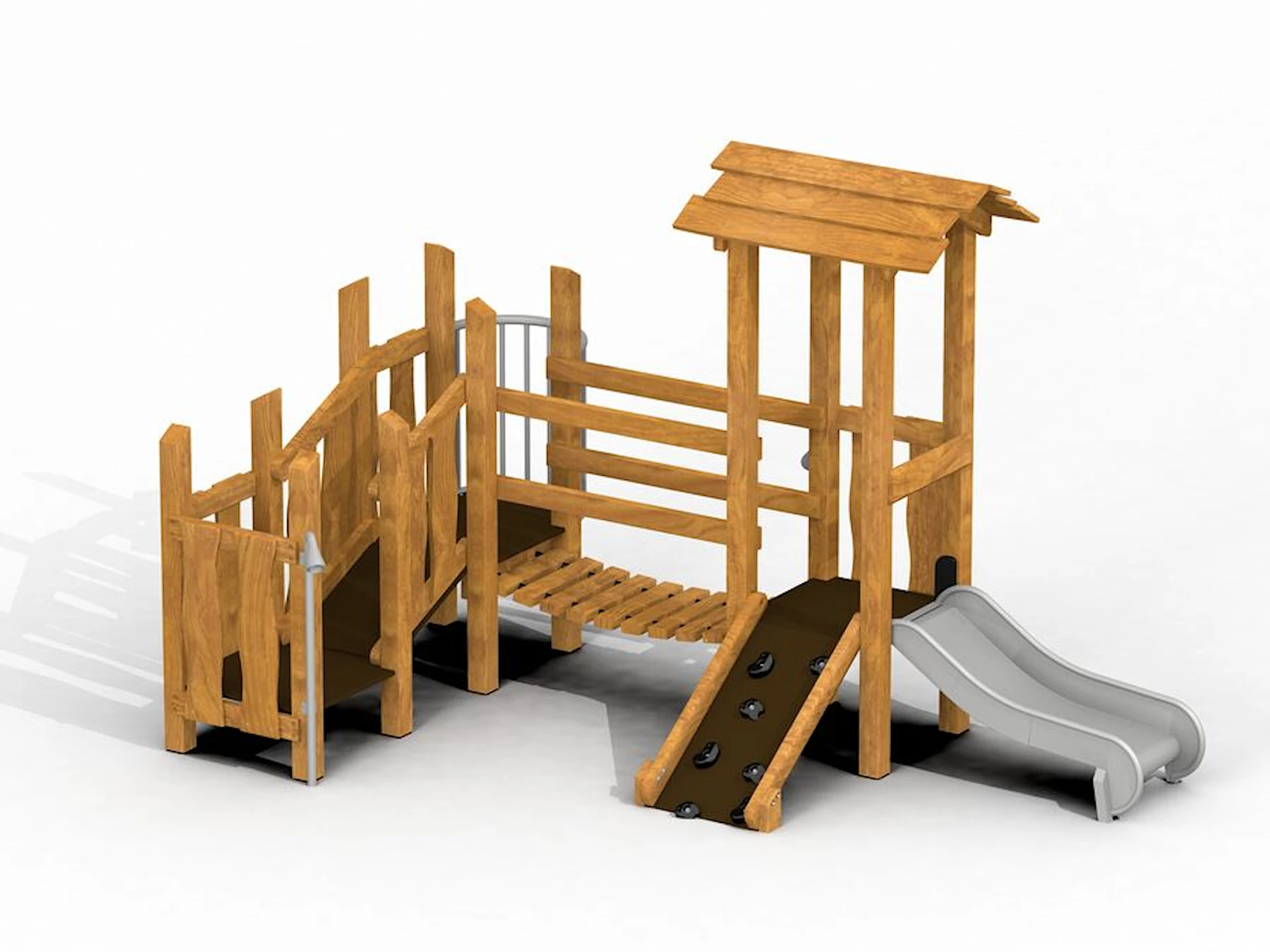 Däremot har vi många produkter utan trä som kan levereras i stort sett omgående, exempelvis Boulder Rocks, gungor, mål, basket, bordtennis, fristående rutschar, klätternät, studsmattor, bänkbord med mera.