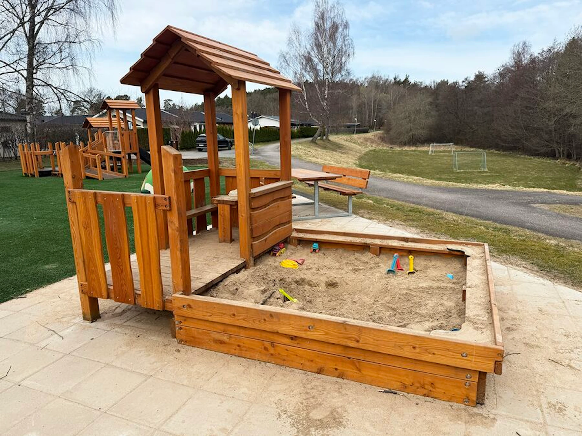 Däremot har vi många produkter utan trä som kan levereras i stort sett omgående, exempelvis Boulder Rocks, gungor, mål, basket, bordtennis, fristående rutschar, klätternät, studsmattor, bänkbord med mera.