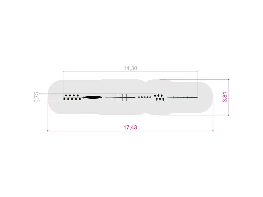 Den raka formen gör Äventyret enkel att integrera längs gångstråk, i aktivitetszoner eller som en del av en större lekmiljö.