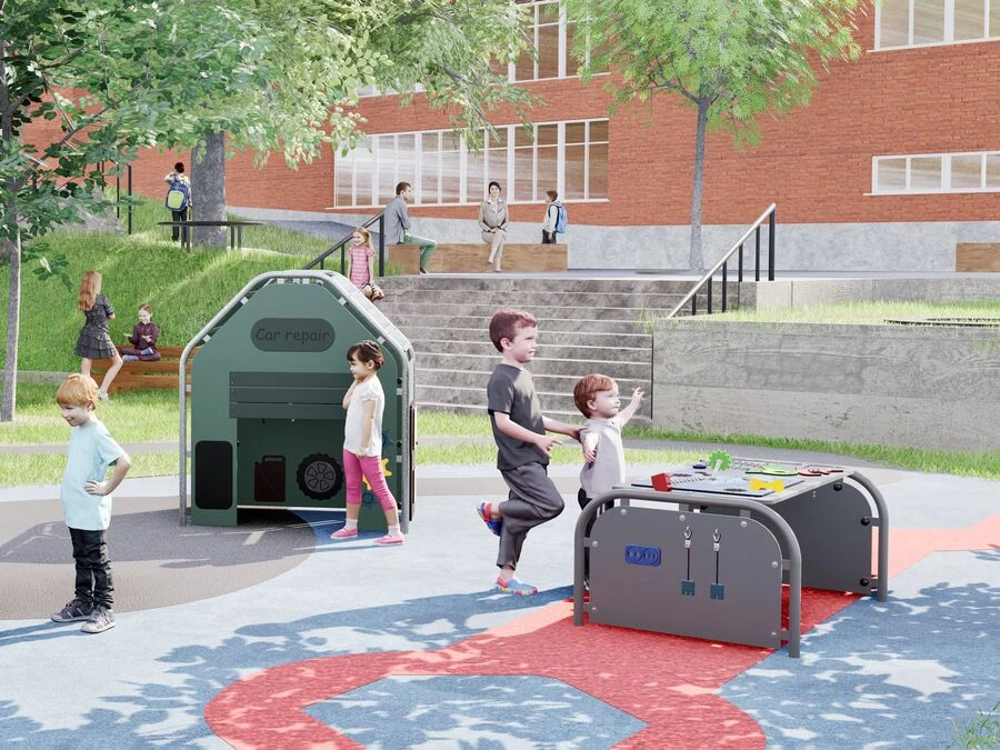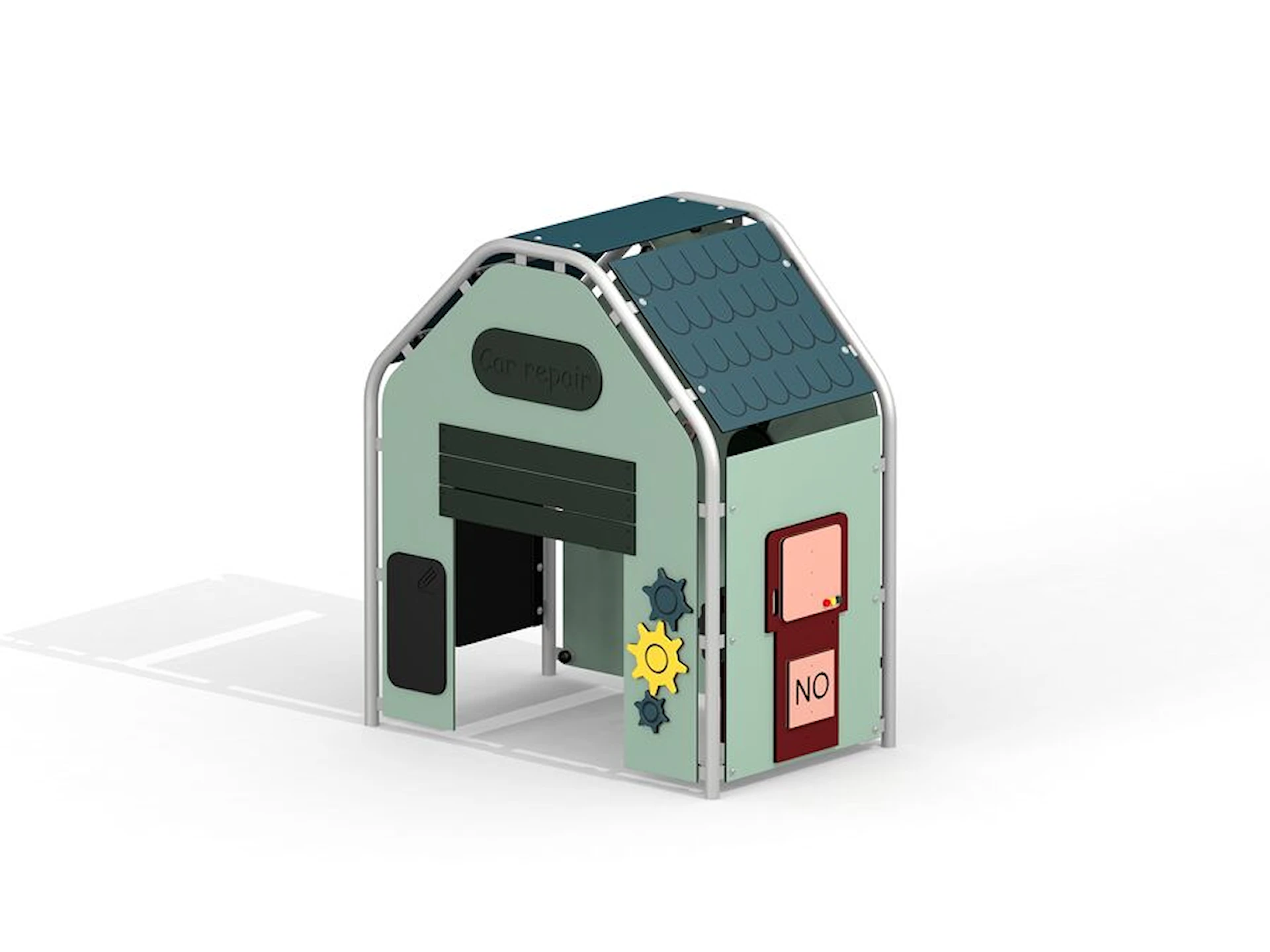 Lekhuset Garaget är tillverkat i slitstarka material som tål utomhusbruk året runt och kräver minimalt underhåll. Ett inspirerande lekhus som kombinerar fantasi, rörelse och gemenskap.