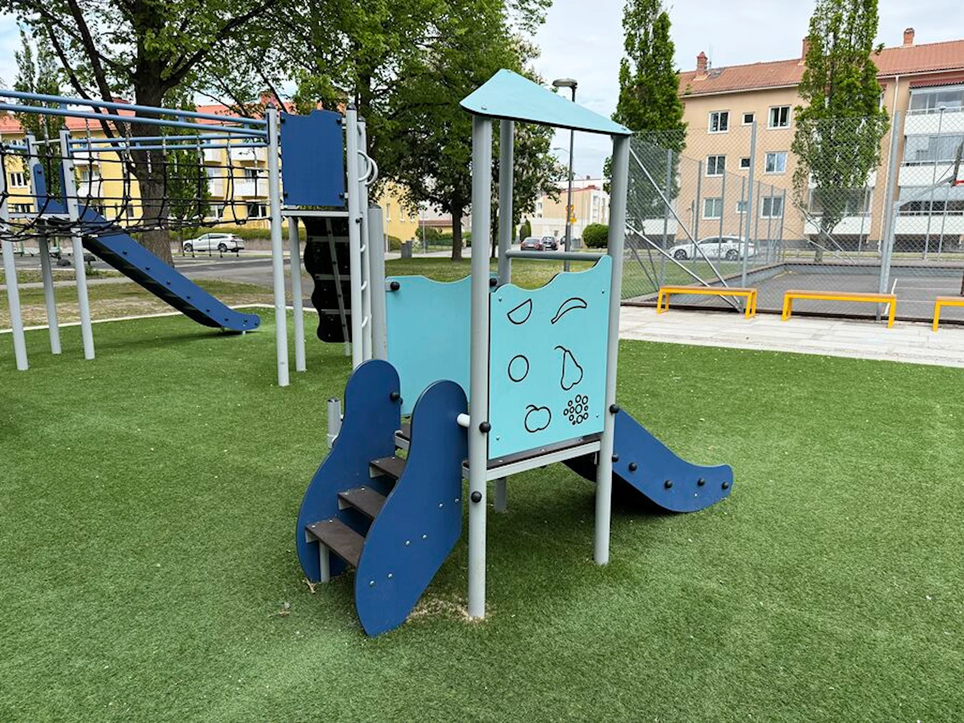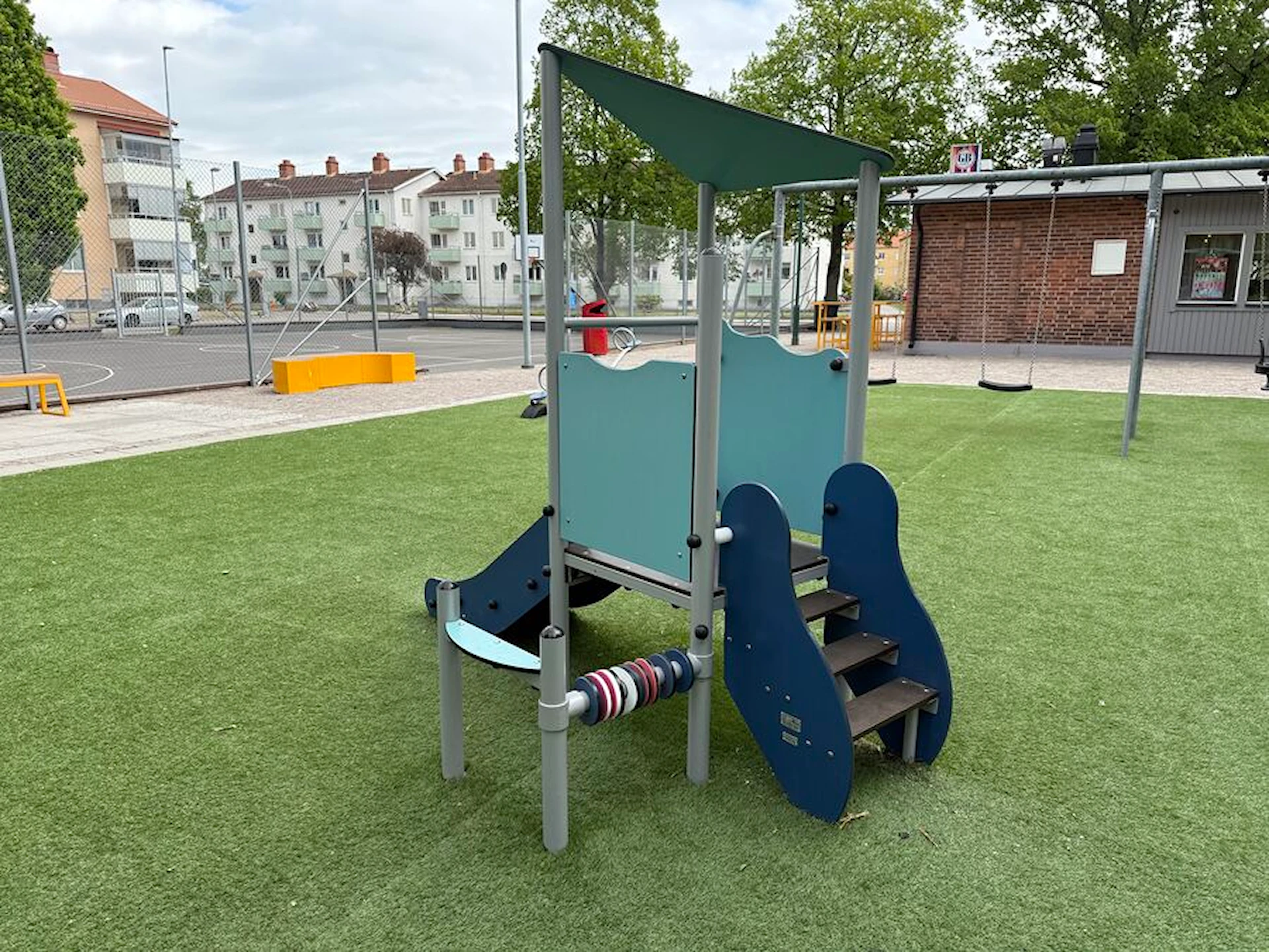 Däremot har vi många produkter utan trä som kan levereras i stort sett omgående, exempelvis Boulder Rocks, gungor, mål, basket, bordtennis, fristående rutschar, klätternät, studsmattor, bänkbord med mera.
