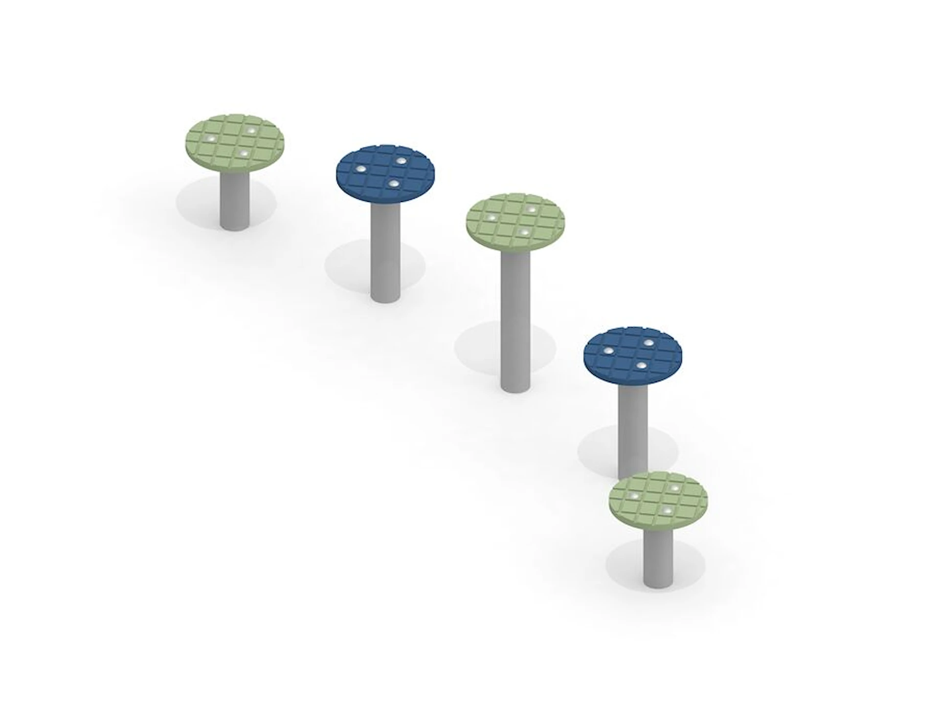 Stolphoppet fungerar lika bra som ett fristående lekelement som en del av en större hinder- eller balansbana där barnen kan skapa egna vägar och utmaningar. Perfekt för lekplatser där rörelseglädje, utveckling och flexibilitet står i fokus.