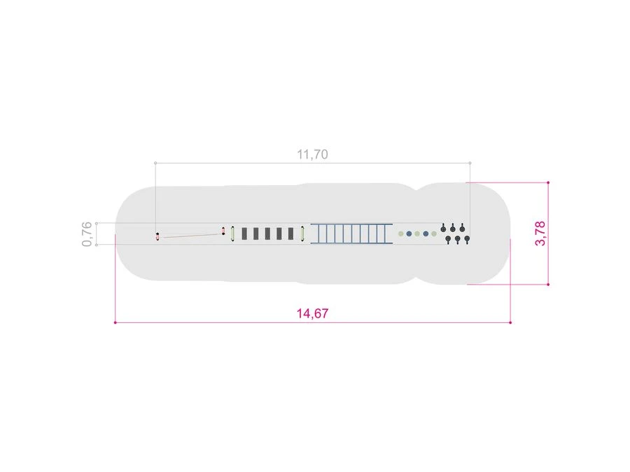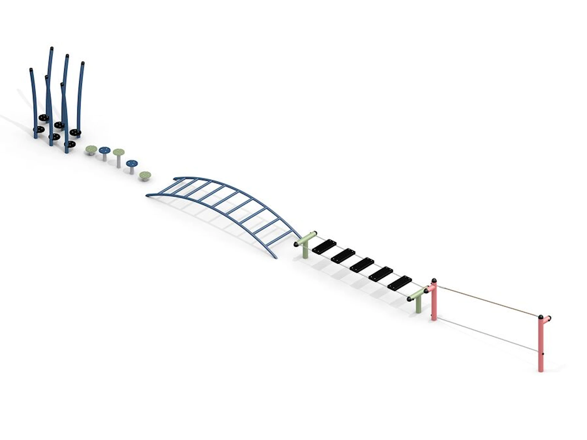Den raka formen gör balansbanan lätt att förstå och använda, vilket passar både fri lek och mer strukturerade aktiviteter. Låg fallhöjd ger en trygg lekmiljö för yngre barn, samtidigt som variationen i momenten skapar lagom utmaning och uppmuntrar till att prova igen.