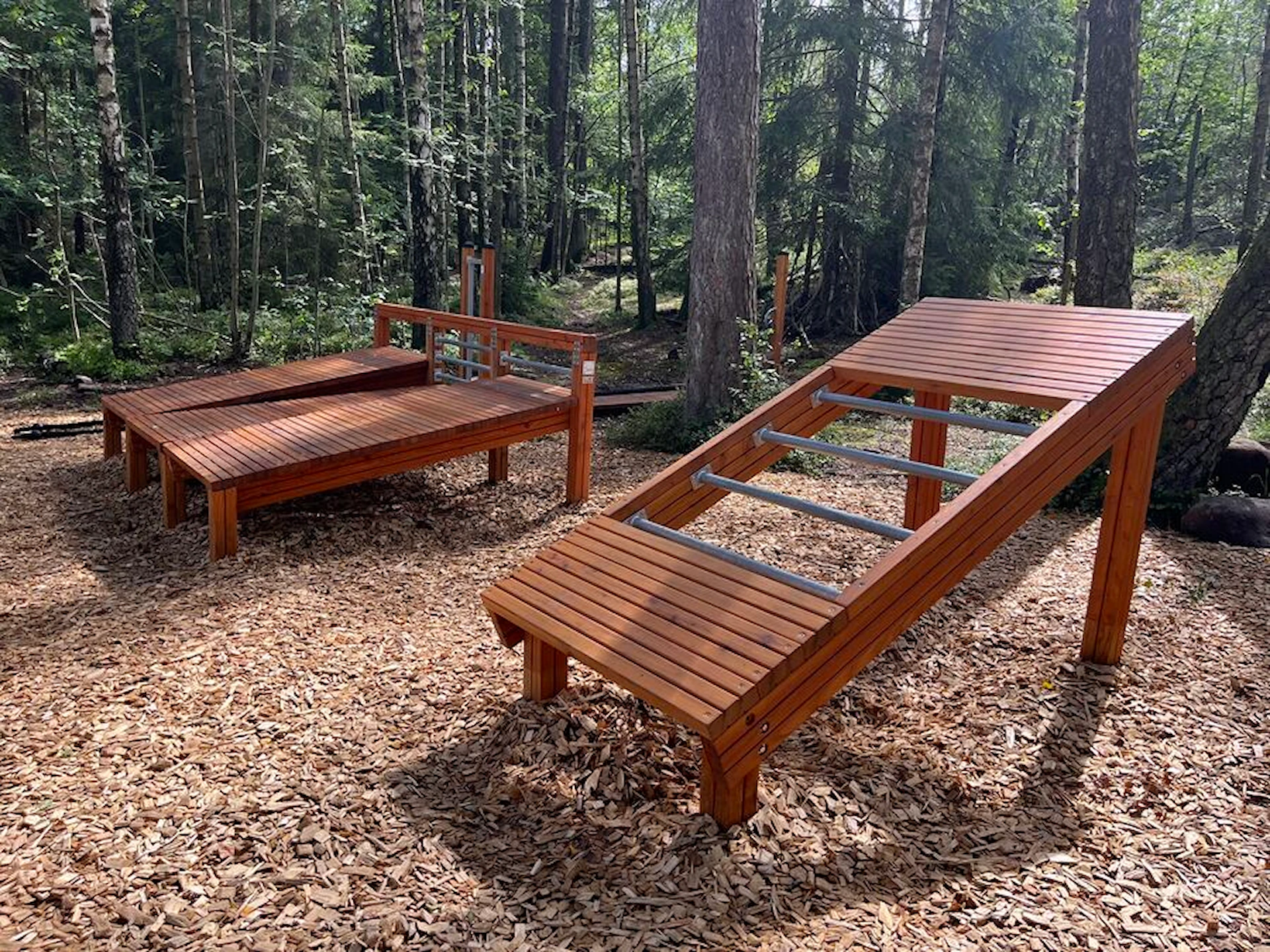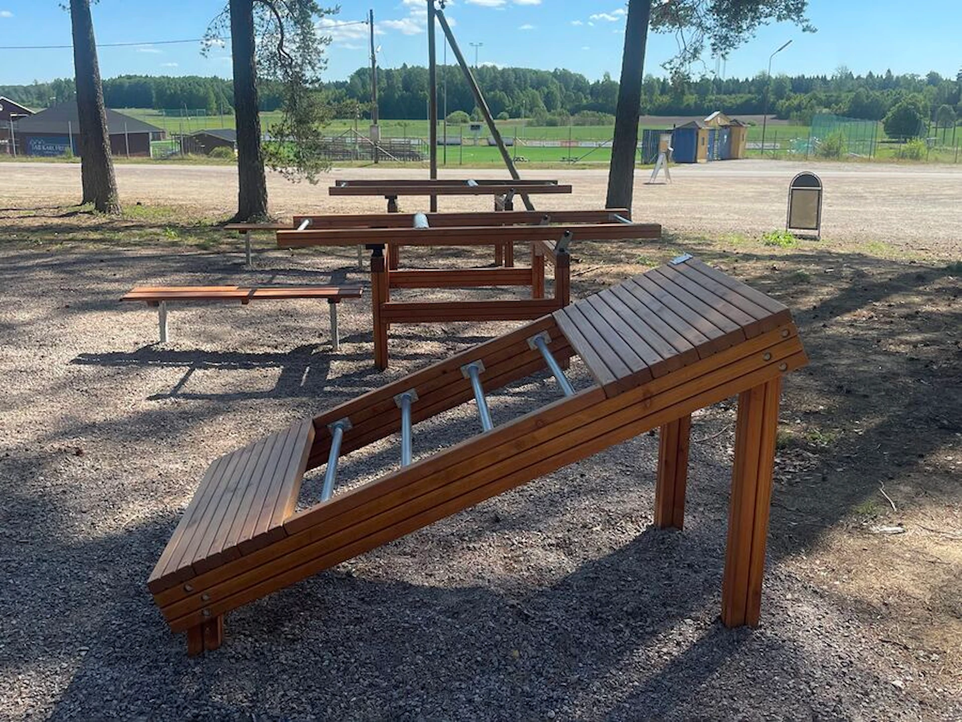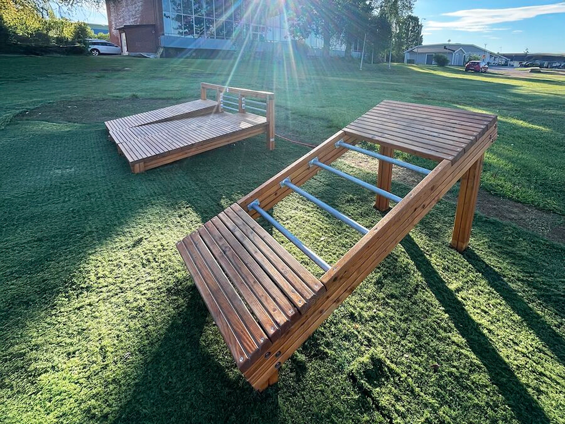 Däremot har vi många produkter utan trä som kan levereras i stort sett omgående, exempelvis Boulder Rocks, gungor, mål, basket, bordtennis, fristående rutschar, klätternät, studsmattor, bänkbord med mera.