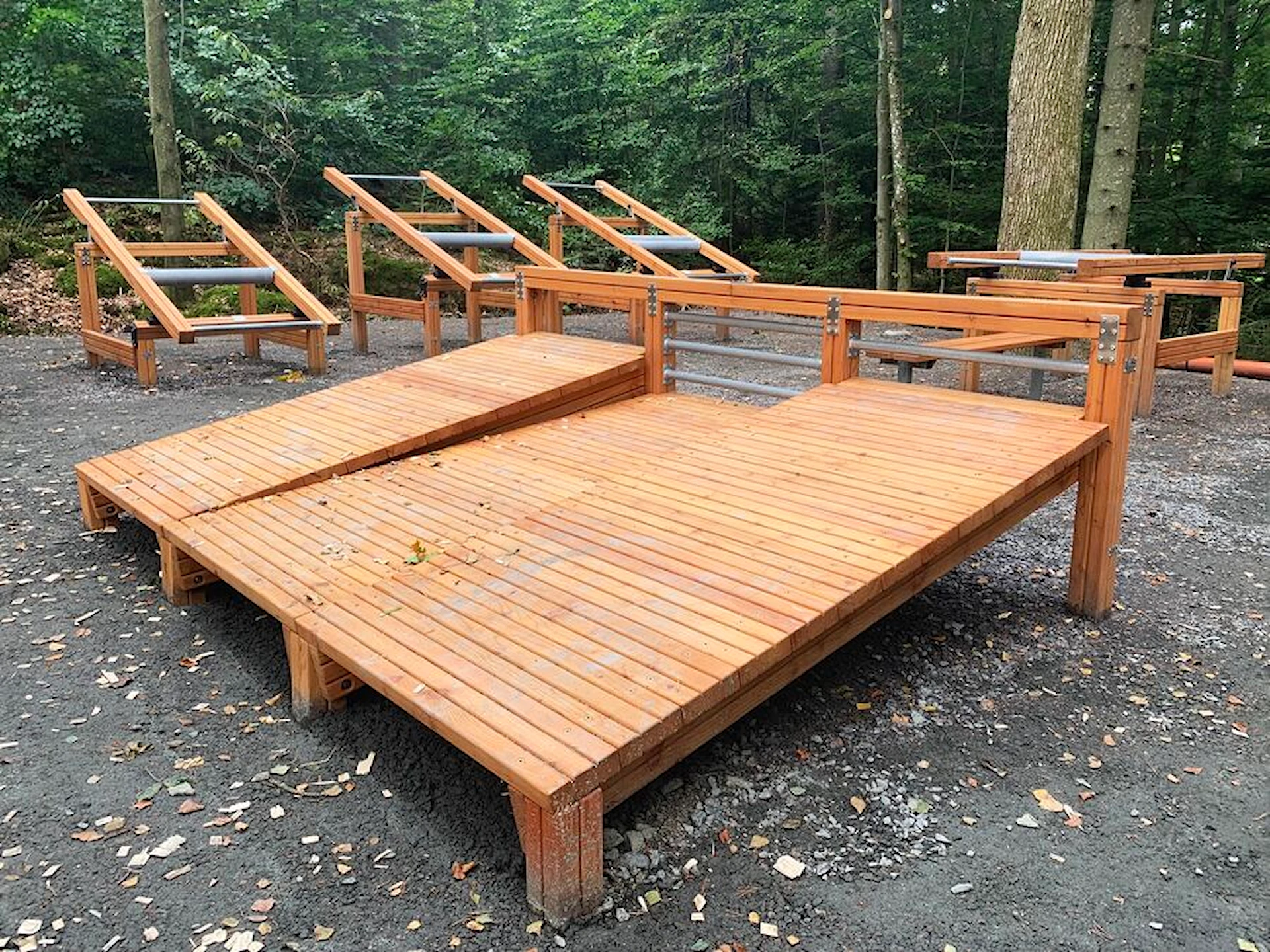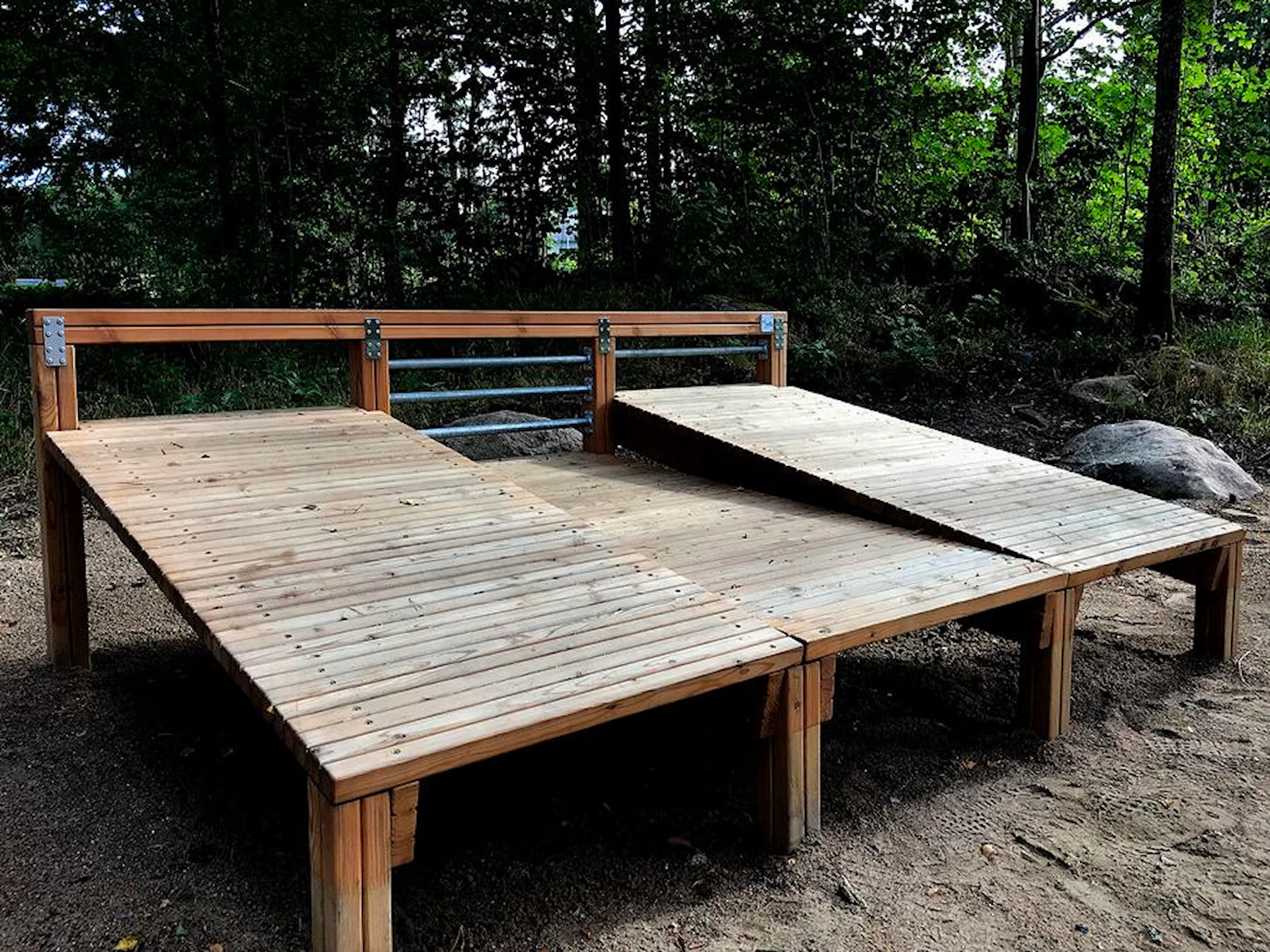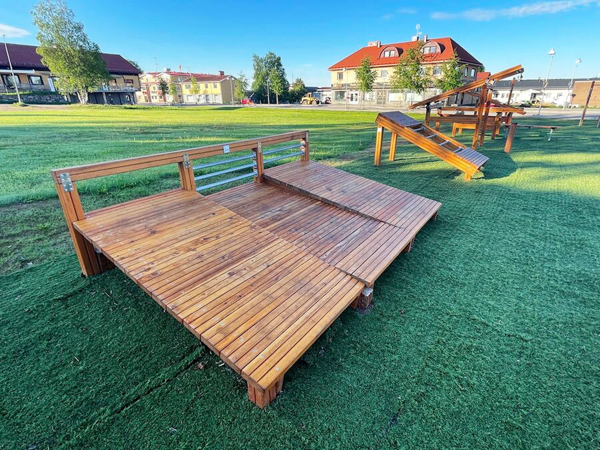 Däremot har vi många produkter utan trä som kan levereras i stort sett omgående, exempelvis Boulder Rocks, gungor, mål, basket, bordtennis, fristående rutschar, klätternät, studsmattor, bänkbord med mera.